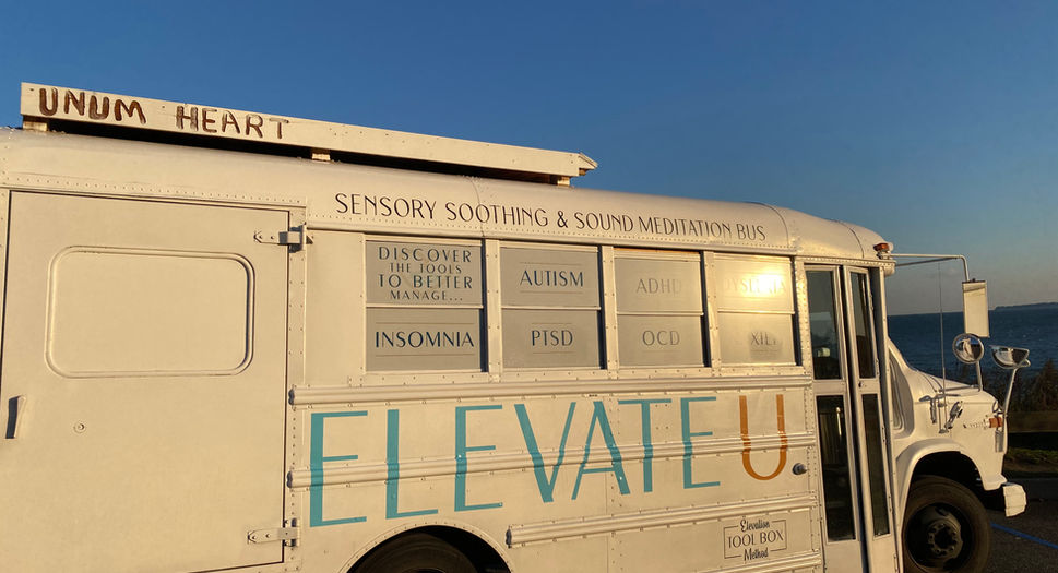 Unum Heart Elevation Station is a school bus that was converted into a tranquil mobile sensory soothing and sound therapy bus where I deliver tangible, fast-acting tools from The ELEVATION Tool Box Method, helping all people to elevate their hearts, mind and to eliminate stress, anxiety, and depression.